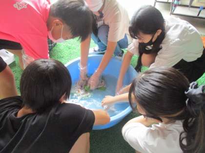 家庭科の学習で手洗い洗濯の実習を行いました。