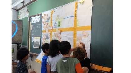 まちたんけんを通して見つけた「わたしの大はっけん」を紹介しあいました。たくさんの発見が地図に集まり子どもたちは喜んでいました。これからも七三の町や人に愛着をもち、自分と町との関わりについて考えてほしいと願っています。