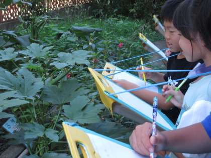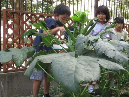 夏休みの間に、4種類の植物は驚くほど大きくなりました。理科の時間に植物の様子を観察し、7月からどのように変化したかについて話し合いました。
