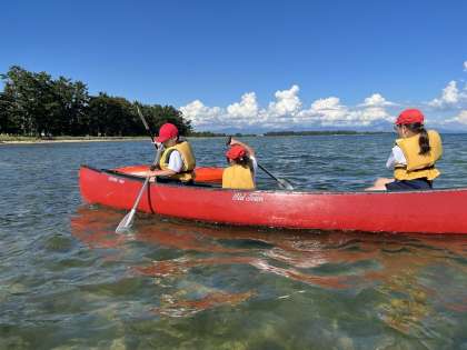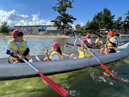 リラックスタイム中も、リーダーとレク係は、この後のキャンプファイヤーのために話し合っています。