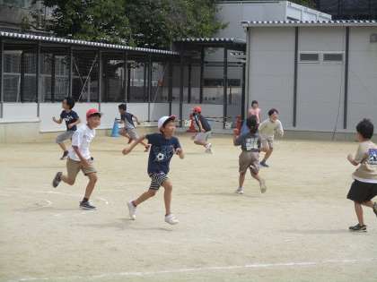 運動場で声をあげながら元気いっぱい走り回る姿がとても楽しそうでした!来年は5年生としてこのような楽しいイベントを企画する側になる4年生。今からわくわくしますね!!