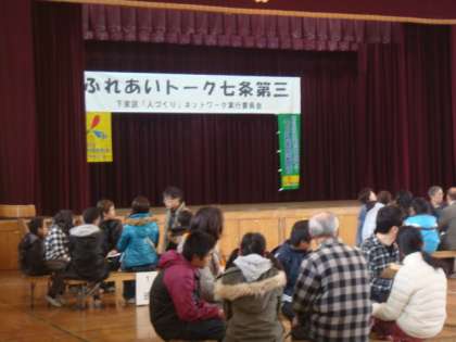 21日(火)に下京区人づくりネットワーク実行委員会主催の「ふれあいトーク七条第三」が行われました。これは,「大人に言いたいこと,聞いてほしいこと」をテーマに,小学生と地域を中心とした大人とが絆を深めながら話をしていく取組です。地域の方中心に40名以上の大人の方が集まってくださり,6年生と話をしていきました。最初は緊張していた子どもたちですが,時間がたつにつれ次第に緊張も取れ,盛り上がりを見せながら話し合いが進んでいきました。普段なかなか大人と話ができないので,とっても楽しかった,いろいろ話ができてよかった,という6年生の感想もありました。これを機会に子どもと地域がより絆を深め,何でも話せる地域になってほしいと思います。