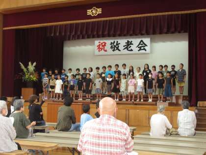 今日は、学校の体育館と校庭で「敬老会式典・ふれ愛広場」が開催されました。