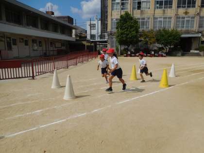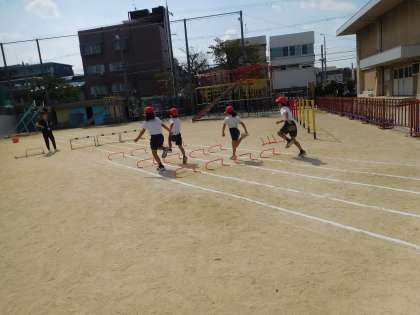 運動会にむけて、バラエティー走の練習をしました。
