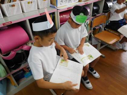 「お手紙」の音読げき発表会に向けて練習をしています。自分で工夫した身振り・手振りを付けたり、台詞によって体の向きを変えたりしながら、がまくんとかえるくんの気持ちにぴったりの音読を考えています。本番が今から楽しみです。
