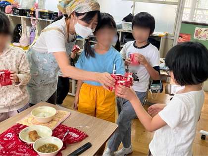今日はさくら学級の児童の1人の誕生日でした。給食時間には牛乳でお祝いの乾杯をしました。すると、別の児童が「記念にみんなで外で鬼ごっこをしよう!」と、素敵な意見を出してくれ、みんな遊びをすることができました。今日のさくら学級は一段と温かい雰囲気に包まれていました。