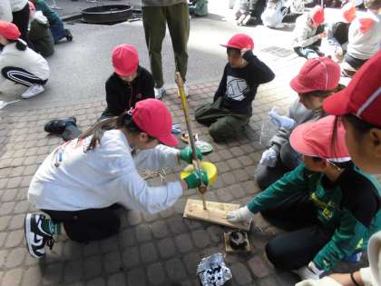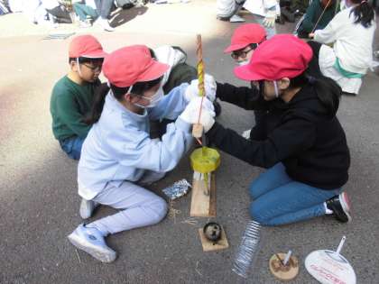 グループで協力しながら、火種を作りました。