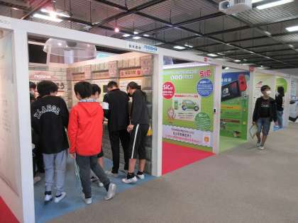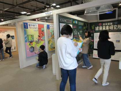 写真は殿堂学習の様子です。全部で16個のブースでそれぞれの会社の特色や創業者の思いについて知りました。実際に触って学べる仕組みの展示もあり、子どもたちは興味をもって楽しく学習できました。