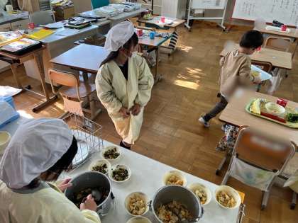 【さくら学級】給食、配膳の様子