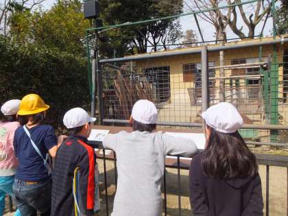動物園ではクイズラリーを行い,園内を班で回りました。