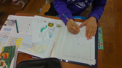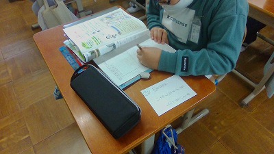 社会科「工業生産を支える輸送と貿易」の単元のまとめとして、学んだことをかるたにまとめました。「貿易で 資源をもらって もの作る」「貿易で 輸入や輸出 助け合おう」などの作品ができあがりました。