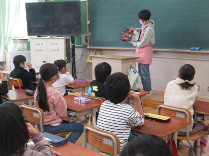 今日は、図書ボランティアの方に読み聞かせをしていただきました。みんな、読み聞かせが大好きです。すてきな朝のスタートでした。