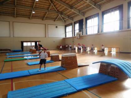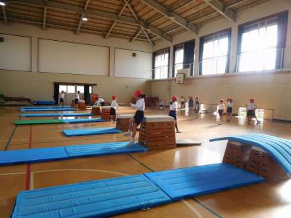 いろいろな跳び方に挑戦したり、できる技を高さを変えて跳んだりすることを頑張っています。美しさや着地をぴたりと止めることにもこだわっています。