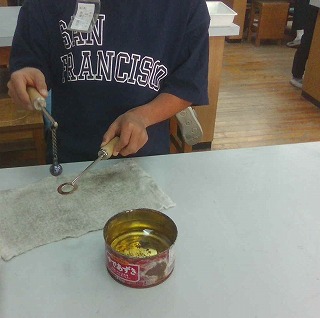 理科「ものの温度と体積」の学習では金属の玉を熱したり、冷やしたりしました。実験前にはガスこんろの安全な使い方をしっかりと確認して実験しました。金属の玉が変化する結果に驚いていました。
