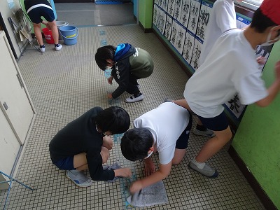 家庭科「ものを生かして住みやすく」の学習で、グループごとに掃除の計画を立てて実践をしました。ぞうきん・綿棒・スポンジなど、汚れに合った掃除用具を選んで、みんな一生懸命に掃除をしました。きれいになると気持ちがいいですね。