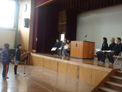 児童朝会の後,毎日の登下校を見守ってくださっている「子ども安全安心の会」部活動でお世話になっている地域の方,授業でお世話になった地域の方に,感謝状をおくり,ありがとうの気持ちを伝える「感謝の会」がありました。地域の皆さんのおかげで子どもたちは安心して,そして楽しく学校生活を送ることができています。普段からありがとうの気持ちをしっかりもって,学校生活を送ってほしいです。