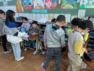 今日は英語を使って、お店役とお客さん役に分かれてお店屋さんをしました。「How much is it?」など習った表現を使って、頑張ってやりとりする姿が見られました。