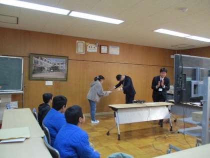 校長先生のお話では、1月8日に七条第三小学校創立87周年を迎えたことや谷川俊太郎さんの「ぼくとがっこう」という絵本の読み聞かせを聞きました。そして新たに3人の転入生が入ってきました。これから仲良くしてくださいね。また、書写の書初め展で入賞した7人が表彰されました。