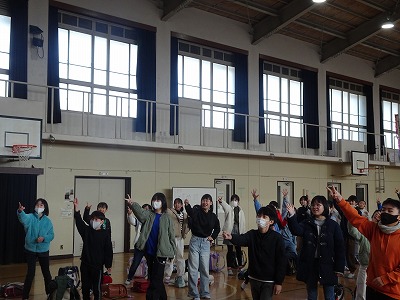 学年みんなで顔を合わせて、これからの行事や3学期にがんばっていくことについて話を聞きました。そのあとは「新春じゃんけん大会」をして盛り上がりました。