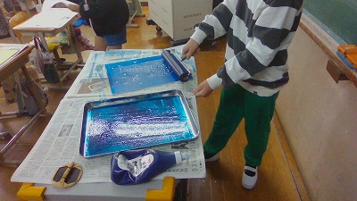 図工科の学習で、掘り進み版画にチャレンジしています。一色目が刷りました。準備や片付けをすすんで行ったり、友達に教えたりしている姿が素敵でした。