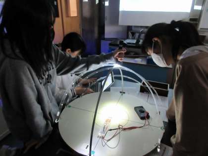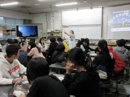 展示見学のあとは、実験室でクラスごとに学習しました。