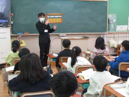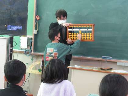 1月16日(火)と17日(水)の2日間、講師の方をお招きして「珠算教室」を実施しました。3年生は初めて「そろばん」をさわる児童がほとんどで、どのようなことを教えてもらえるのかを楽しみにしている子もいれば、少し心配そうにしている子もいました。