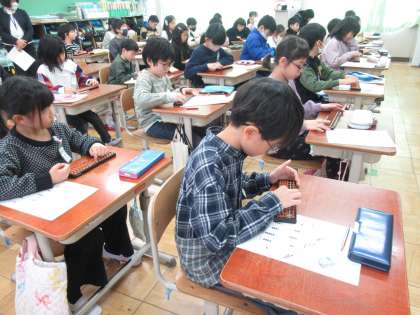 「意外と簡単だった。」「そろばんって、結構楽しいな。」などの感想も聞かれ、初めて取り組む珠算に対して興味をもった子がたくさんいました。