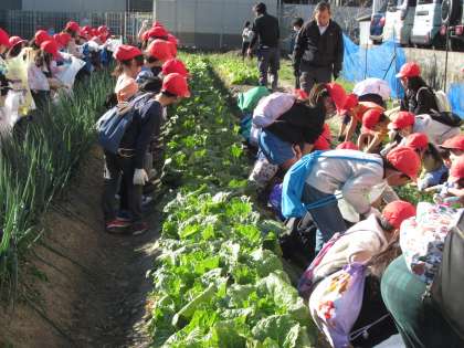 2学期に社会科「農家でつくられるもの」の学習をしましたが、その学習の一環としてJA京都市(京都市農業協同組合)の畑で、京野菜収穫体験をさせていただきました。