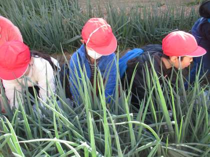 野菜を初秋からどのように育ててきたのかについてお話を聞いた後、クラスごとに移動しながら3種類の野菜を収穫させていただきました。
