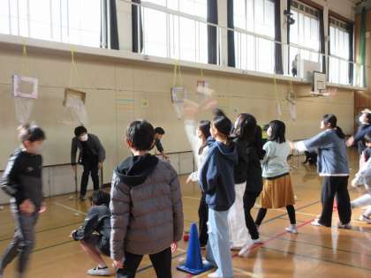さすが6年生、遠くから投げて見事に的に的中させる児童もいました。