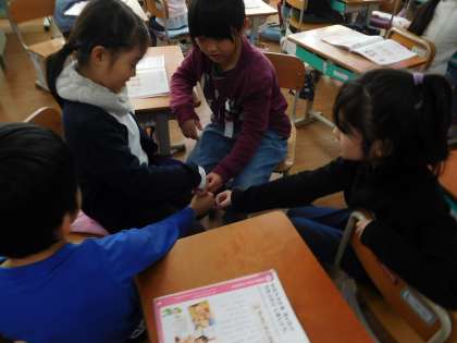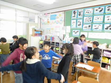 日本には、古くから遊ばれている「わたべうた」がたくさんあります。この学習では、「なべなべそこぬけ」「ずいずいずっころばし」「あんたがたどこさ」の歌や遊びに親しんでいます。