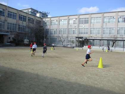 体育では「ペース走」と「鉄棒」の学習をしています。