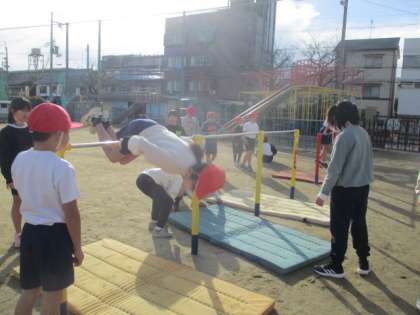 体育で学習し始めてから休み時間や放課後などに鉄棒をしている子どもたちが増えているようです。