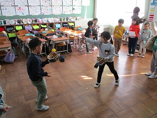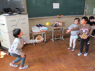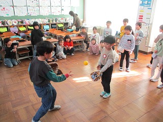 大谷選手から送られてきたグローブを使って、キャッチボールをしました。グローブを見て、とても嬉しそうでした。初めはどちらの手に、はめるのか迷っている子もいましたが、グローブを使ってみて、「楽しかった!」ととても楽しめた様子でした。野球が好きになるきっかけになるといいですね。