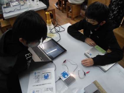 後半は、GIGA端末でプログラミングを行い、自分が組んだプログラム
