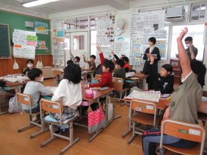 社会科「安全なくらしを守る」では、「火事をふせぐ」に続いて「事故や事件をふせぐ」の学習に入りました。京都市内の事故・事件発生件数や下京区の事故・事件発生件数の推移などの資料を見て気付いたことや疑問に思ったことを話し合い、単元の学習問題を一緒に立てました。