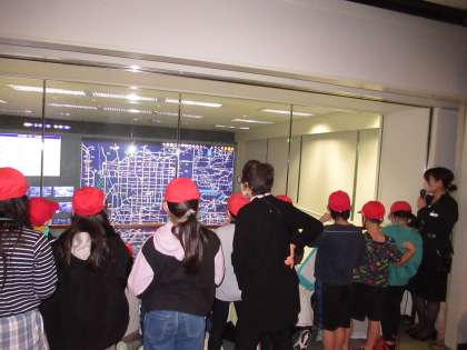 20日・21日の2日に分けて、京都府警察広報センターへ社会見学に行きました。警察の仕事についての動画を視聴した後、交通管制センター・通信指令センターを上から見せていただきました。