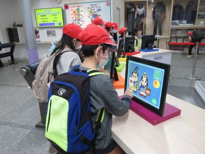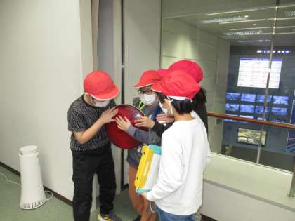 実際の信号機の模型も見せていただいたのですが、いつも下から見上げている信号機の点灯する部分を近くで見ると大きくて(なんと直径30センチメートルだそうです)みんな驚いていました。