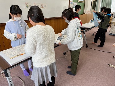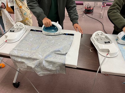 今週の授業では、アイロンを使ってランチョンマットの折り線をつけました。次の授業からいよいよミシンでぬっていきます。