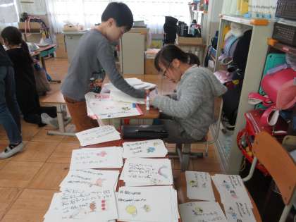ハナヤ学習では、七三地域のお年寄りを笑顔にするための「笑顔プラン」の実施に向けて、どのクラスでも準備を進めています。