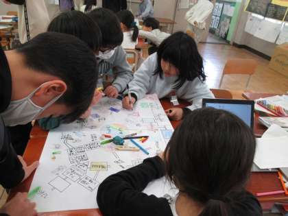 先月の学習発表会で、昨年度この学習をした4年生から、とてもすてきなアドバイスをたくさんもらいました。そのアドバイスをもとに、それぞれのグループで、自分たちのプランをよりよくするために工夫を重ねてきました。「自分たちのつくった昔の道具かるたで、お年寄りを笑顔にしたい。」「地域の施設のお年寄りに元気に過ごしてもらいたいので、この体操を提案したい。」みんな一生懸命、がんばっています。