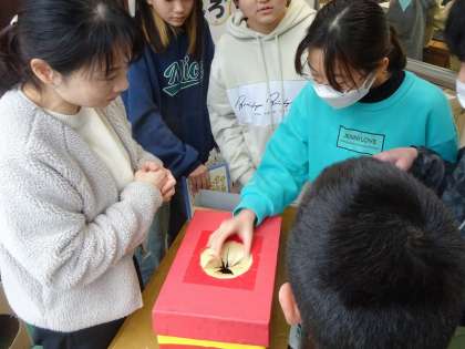 図書館で本を借りると、図書館司書の先生が用意してくださったおみくじボックスからおみくじを引けます。
