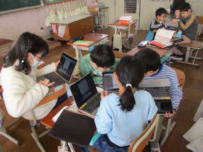 国語科「初雪のふる日」は、読んで感じたことをまとめ、伝え合うことをめあてとして学習を進めています。