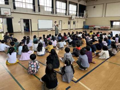 今日は体育館で学年集会を行いました。学年目標は「にこにこ2年生」です。優しさいっぱいでにこにこと笑顔にあふれる1年間を送ってもらえたいと思います。