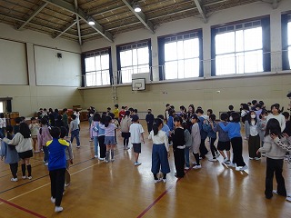 新しい学年のスタートを切りました。学年みんなで体育館に集まって学年目標を確かめました。そして、学年でレクリエーションをして学年の仲を深めました。