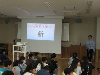 6年生の教室は、できたてピカピカの新校舎です。木の香りのする新しい校舎です。始業式の次の日に、新校舎3階の多目的室で「学年集会」を行いました。今年度の見通しを知り、学年目標を確かめたあと、教科学習でお世話になる教職員から進級のお祝いや励ましの言葉をいただきました。