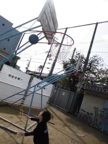 あさのうんどうで ボールをつかいました。