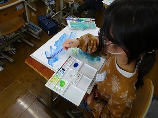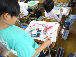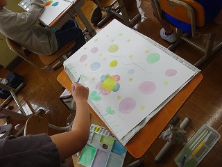 絵の具を使っていろいろな表し方を試しながら、表したい模様を考えて、作品づくりに取り組みました。