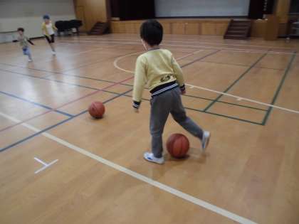 たいいくかんで からだをうごかしています。