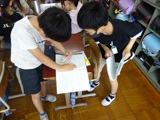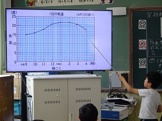 折れ線グラフのどこに注目して考えたのか、前で発表したり、ペアで話し合ったり、様々な方法で交流しました。答えを求めて終わるのではなく、どのように考えたのか、どこから考えたのかなど根拠を大切にこれからも学習を進めていきます。